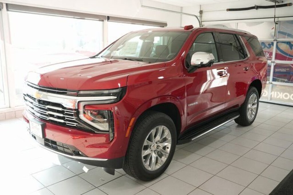 Radiant Red Tintcoat 2025 Chevrolet Tahoe Premier 4WD 10-Speed Automatic with Overdrive 3.0L I6 4WD, Black Leather.