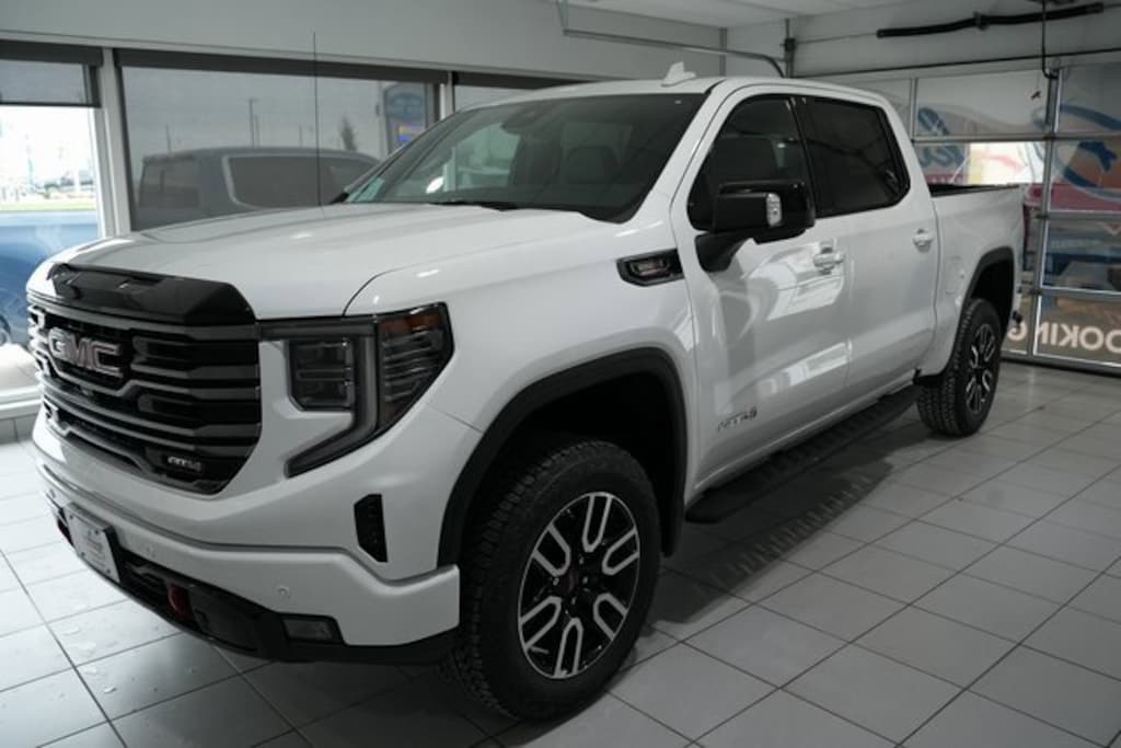 Summit White 2026 GMC Sierra 1500 AT4 4WD 10-Speed Automatic 3.0L I6 10-Speed Automatic, 4WD, Jet Black With Kalahari Accents Leather.
