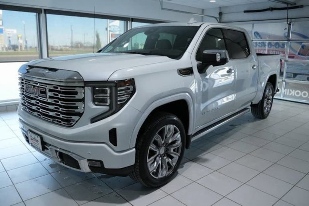 Glacier White Tricoat 2026 GMC Sierra 1500 Denali 4WD 10-Speed Automatic EcoTec3 6.2L V8 10-Speed Automatic, 4WD, Atomsphere Leather.