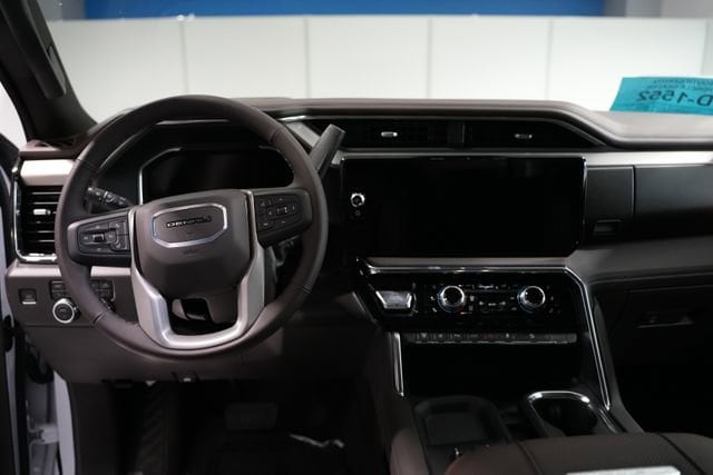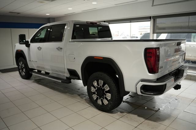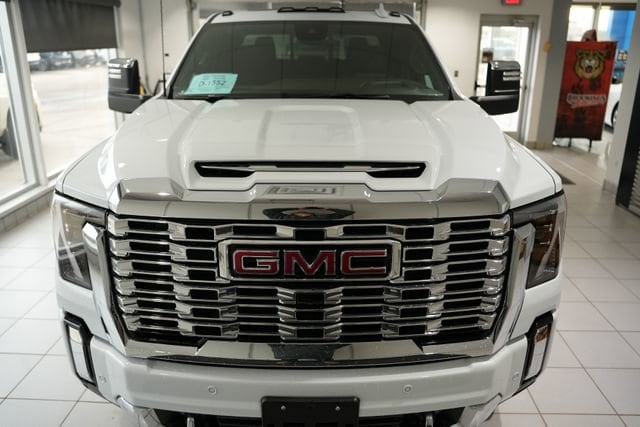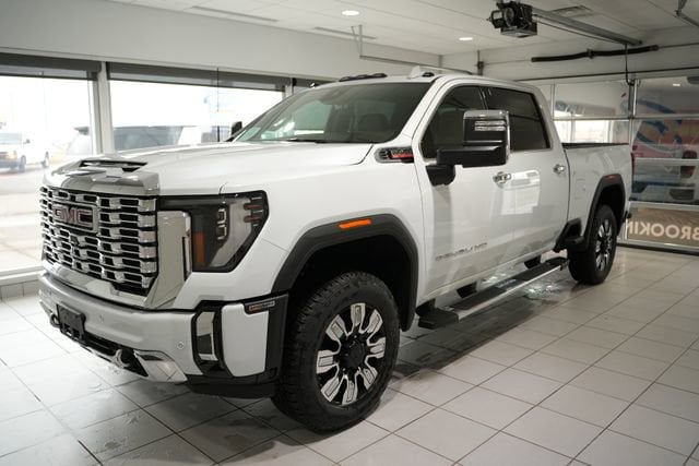 Glacier White Tricoat 2026 GMC Sierra 2500HD Denali 4WD 10-Speed Automatic Duramax 6.6L V8 Turbodiesel 10-Speed Automatic, 4WD, Atmosphere/Brownstone Leather.