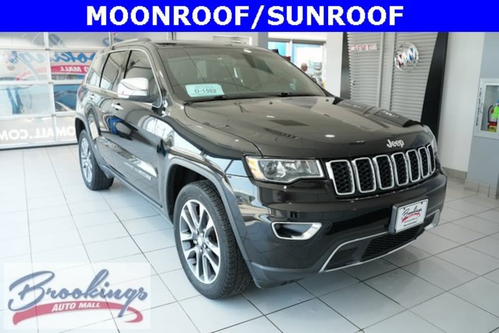 **NO ACCIDENTS, **GOOD TIRES, **BACK-UP CAMERA, **MOONROOF / SUNROOF, **LEATHER INTERIOR, **HEATED SEATS, **SIRIUS XM RADIO, 4WD.2018 Jeep Grand Cherokee Limited Odometer is 20485 miles below market average! 4WD Diamond Black Crystal Pearlcoat 8-Speed Automatic 3.6L V6 24V VVTAwards:* 2018 KBB.com 10 Most Awarded BrandsBrookings Auto Mall - Your Premier Buick, Chevrolet, and GMC Dealership Since 1961 At Brookings Auto Mall, we are dedicated to providing top-tier service for all your automotive needs. As your trusted Buick, Chevrolet, and GMC dealership, we offer an exceptional selection of new and pre-owned vehicles, all fully inspected and detailed for your peace of mind. Our experienced sales team is here to guide you through the buying process, ensuring you find the perfect vehicle. Why Choose Brookings Auto Mall? Extensive Inventory: Explore our diverse selection of new Buick, Chevrolet, and GMC models, along with a wide variety of pre-owned vehicles from various other top brands, all carefully chosen to meet your needs and budget. Expert Financing Services: Our finance team is committed to securing the best rates and tailored financing options to fit your needs. Comprehensive Parts & Service Center: Keep your vehicle running smoothly with our certified technicians and genuine OEM parts. We offer everything from routine maintenance to complex repairs. GM Certified Collision Repair Center: Trust our skilled professionals to restore your vehicle to its original condition, using state-of-the-art equipment and techniques. Serving the Brookings community and surrounding areas, including Watertown, Sioux Falls, Mitchell, Aberdeen, Sioux City, Fargo, Moorhead, Madison, Huron, and Marshall, we pride ourselves on delivering the highest quality of service and professionalism. Visit Us Today! Discover the Brookings Auto Mall difference. Whether you're shopping for a new vehicle, need expert maintenance, or looking for the best financing options, we've got you covered. Stop dreaming, start driving with Brookings Auto Mall. Visit us online at www.brookingsautomall.com or call us at (605) 696-7834 to get started!